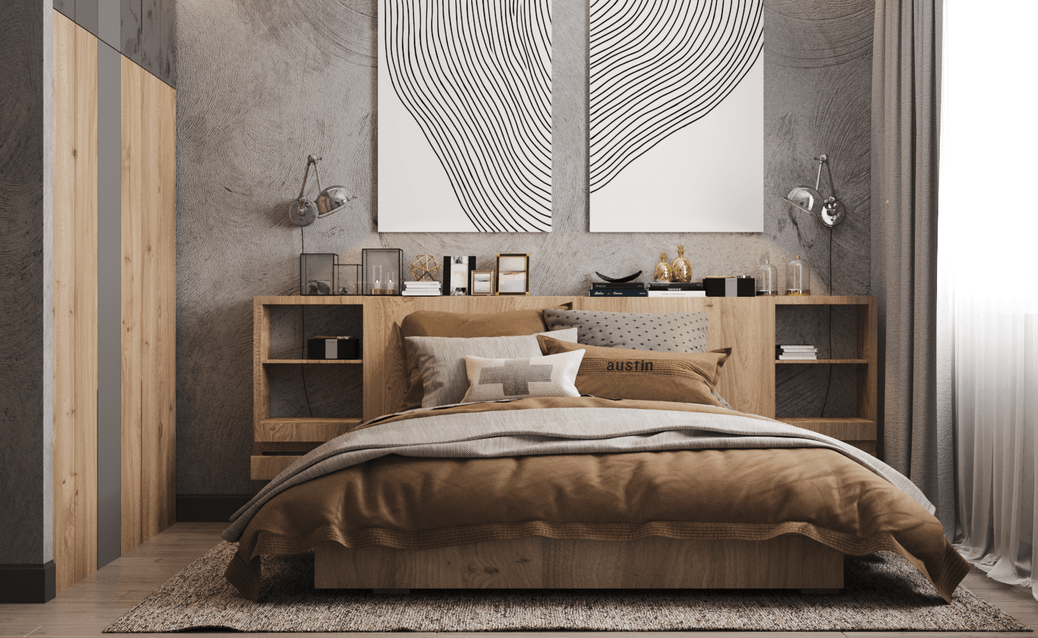 Дизайн проект спальни в стиле Лофт, г. Алматы
