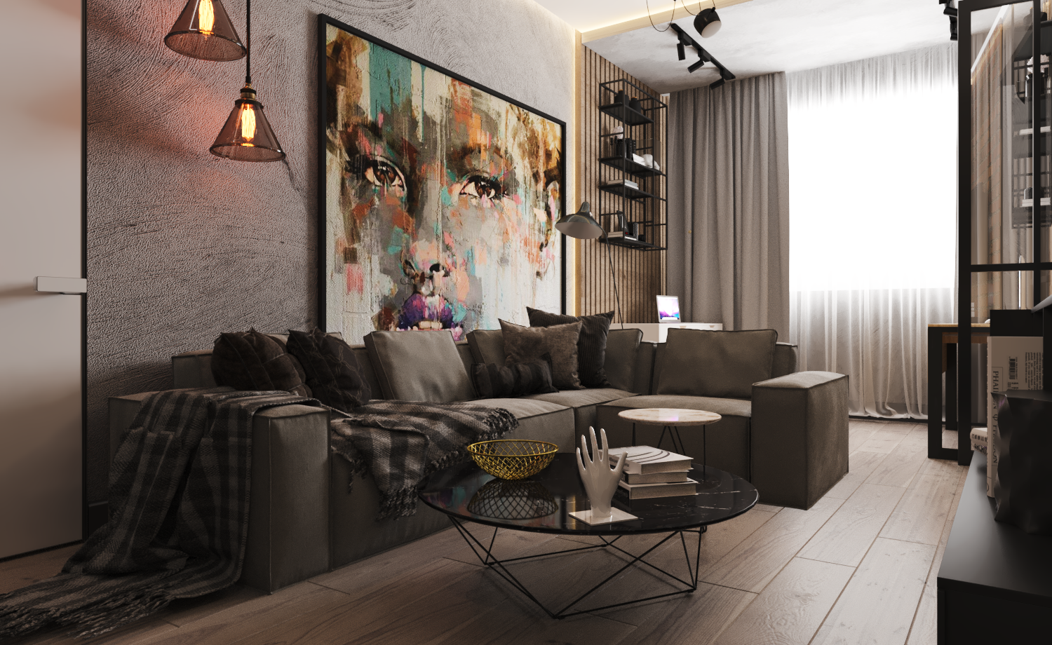 Гостиная в стиле лофт, ЖК «Акварель», г.Алматы