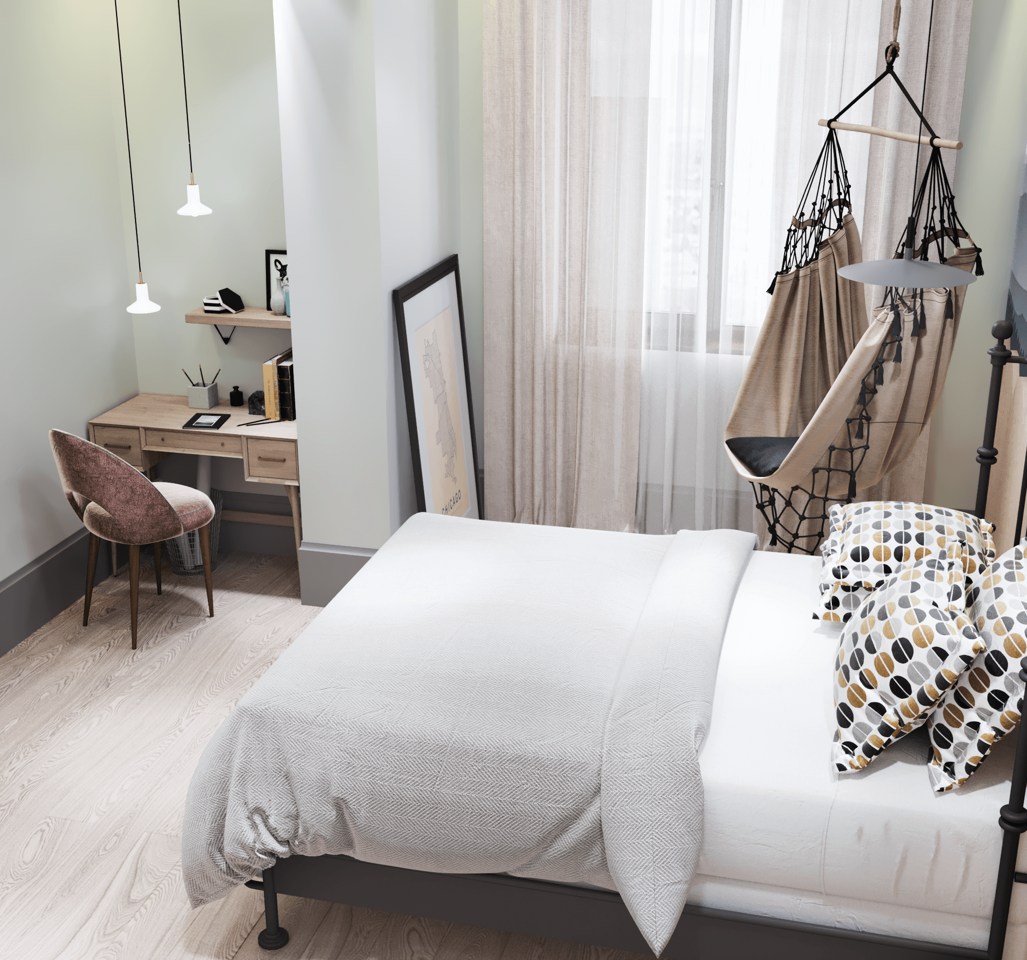 Дизайн проект спальни в КГ «ALATAU Village», г. Алматы