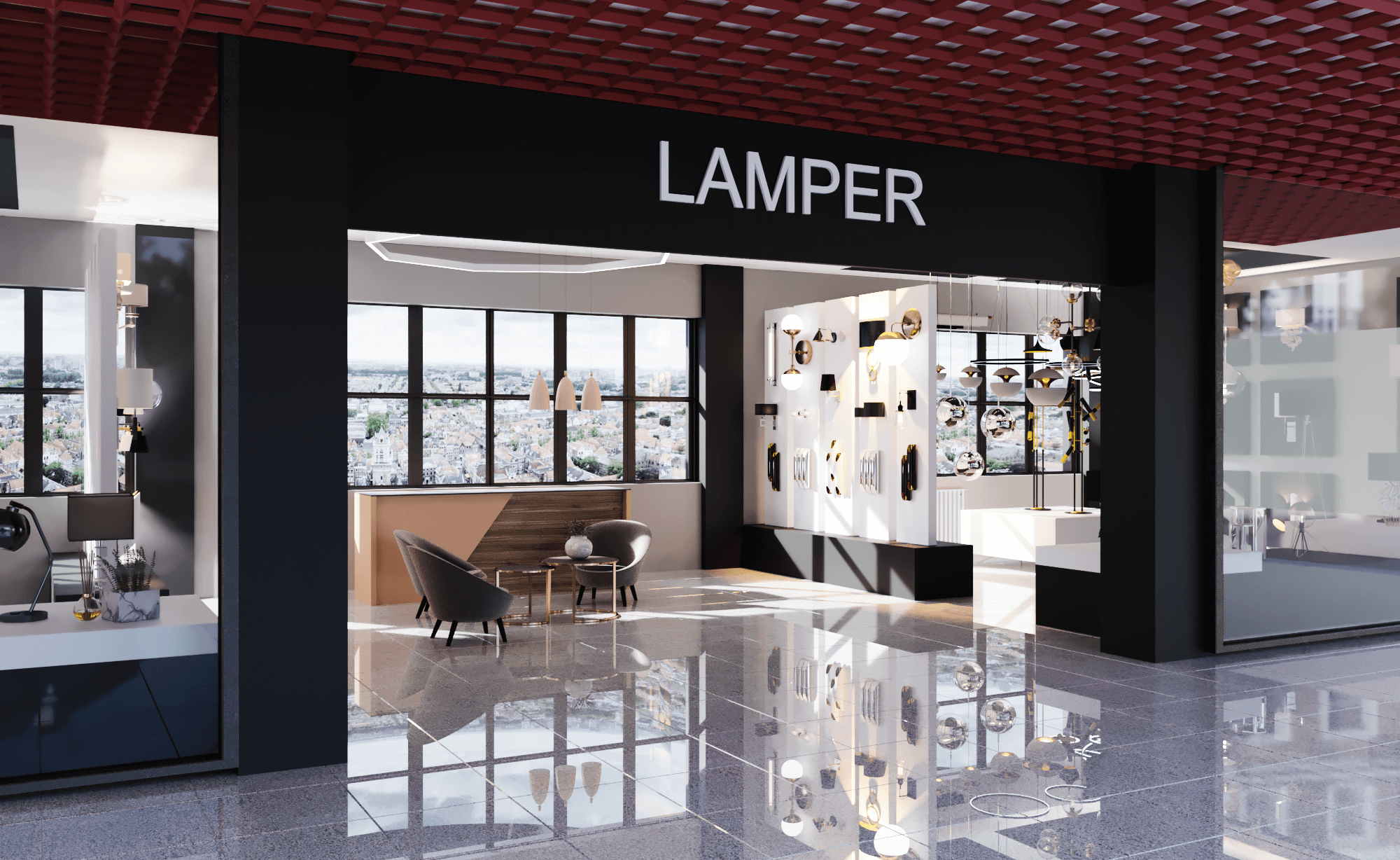 Дизайн-проект бутика освещения LAMPER, г. Алматы, Казахстан