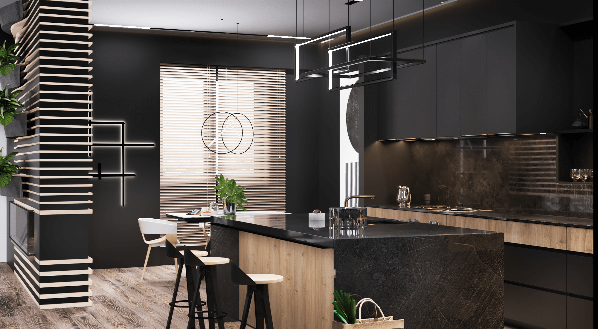 Дизайн-проект гостиной и кухни, дом 300 кв.м, город Алматы